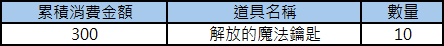 活動方式:活動期間內,累積消費達指定金額,即可獲得獎勵「解放的魔法鑰匙] x10」