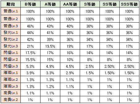 成功機率是以一般成功和大成功機率合計的值 |