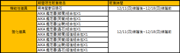 《AIKA Online》將於 12/11(四) 08:00至16:00 進行例行維護作業,請主人們記得提前下線,快樂玩平台維護期間,相關儲值轉點將暫停服務,請多加留意。若例行性維護提早完成,將另行公告通知,謝謝。