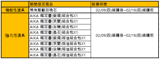 濃縮A級、AA級、S級、SS級強化道具下次販售時間為2023/02/16(四)維護後